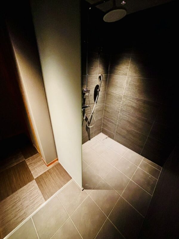 一方、客室の風呂はというと、「シャワーのみ、扉なし」